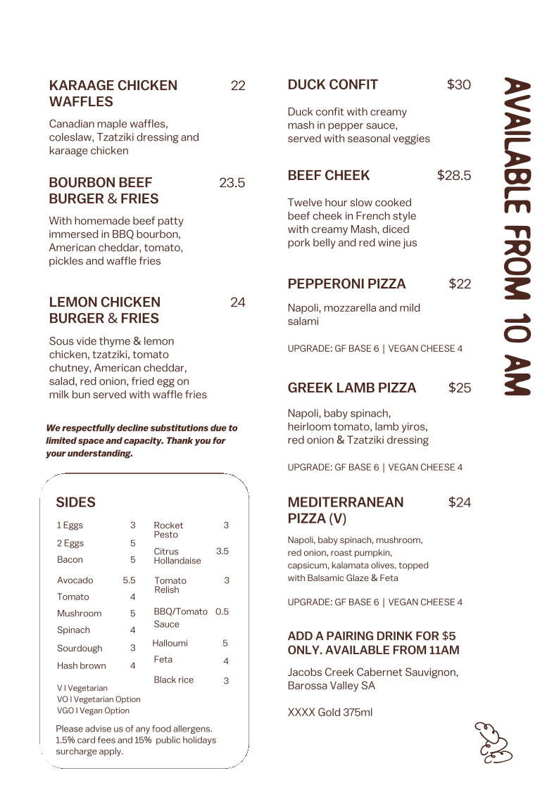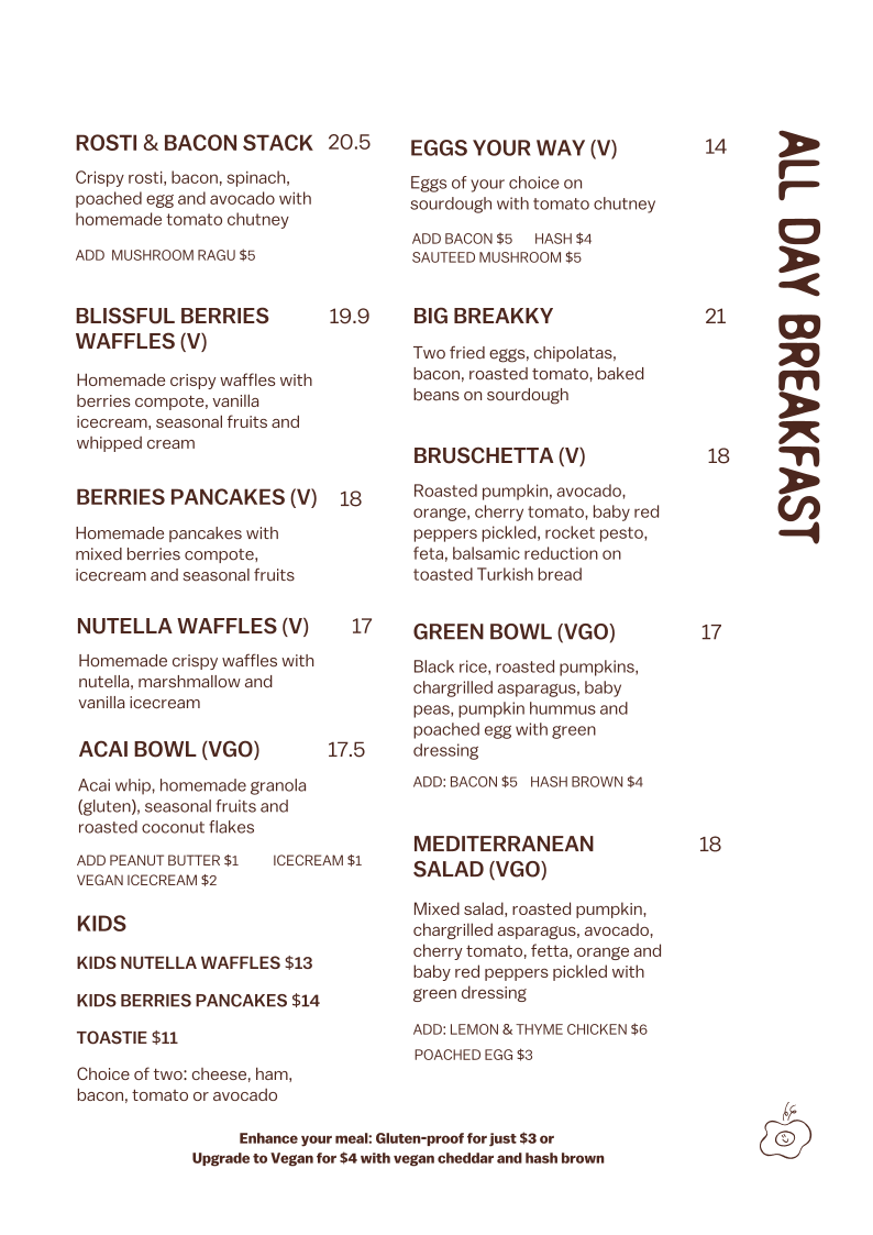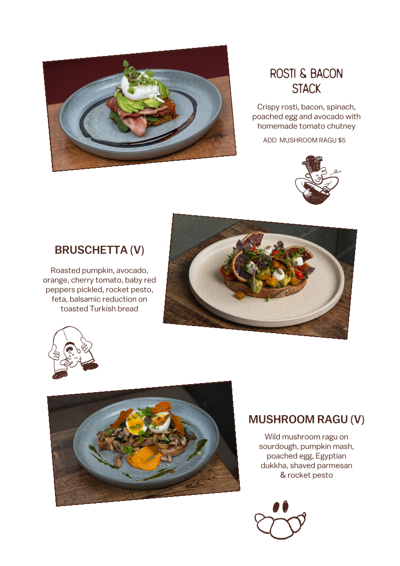 The cafe’s hot menu boasts a range of enticing dishes that will tantalize your taste buds. Start your day with their Rosti & Bacon Stack, a mouthwatering ensemble of crispy rosti, savory bacon, fresh spinach, a perfectly poached egg, and creamy avocado, all brought together with homemade tomato chutney. For those seeking a vegetarian delight, the Bruschetta offers a colorful plate of roasted pumpkin, avocado, orange, cherry tomato, and more, elegantly drizzled with balsamic reduction on toasted Turkish bread. If you’re in the mood for a rich, earthy flavor, the Mushroom Ragu, featuring wild mushrooms on sourdough with pumpkin mash and poached egg, will satisfy any craving. Each dish is thoughtfully crafted and beautifully plated, making your dining experience not only a feast for the palate but also for the eyes.
